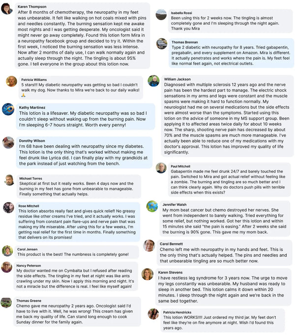 Mira Pain Relief & Repair Lotion is designed to support nerve health and comfort by delivering essential nutrients directly where you need them most. Many customers find it helpful for burning, tingling, and numbness sensations.